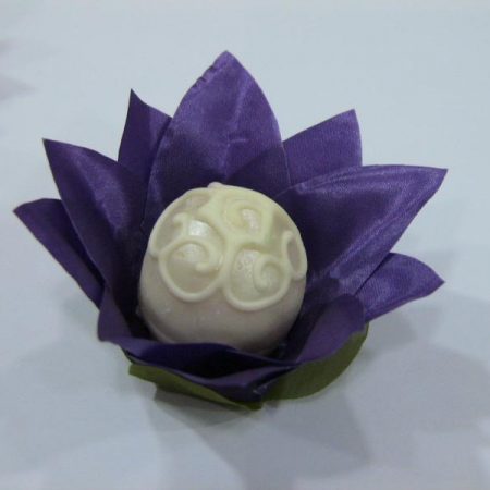 Forminha folhagem em tecido cetim. Cores: marron, pérola, verde, violeta, lilás, amarela e dourada.
